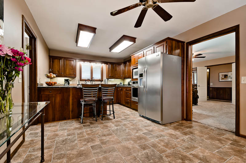 The lower level hosts 3 bedrooms and 2 full baths with a large recreational area with pool table and bar, complete living area with large screen TV equipped with DirecTV, full modern kitchen, and a dining table for 8. 2 bedrooms have queen size beds and 1 bedroom has a trundle bed with 1 full and 1 twin mattress.