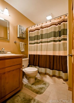 The lower level hosts 2 bedrooms and 1 full bath with a shower, a recreational area with a pool table, complete living area with a pull-out sofa and large screen TV equipped with DirecTV. 1 bedroom has a queen size bed and 1 bedroom has a full size bed and twin bunk bed.
