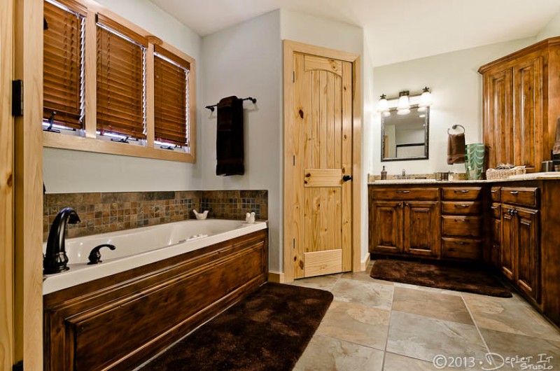 The upper level hosts the Master bedroom which has a king size bed and private bath with tub, and access leading out to the spacious deck; and 2 bedrooms with queen size beds and 1 additional full bathroom. The lower level contains a large recreational living area with ping pong table, poker table, bar, small café table, microwave, coffee pot, and mini refrigerator. 1 bedroom with queen size bed and 1 bedroom with a full and twin size bunk bed share 1 full bathroom.